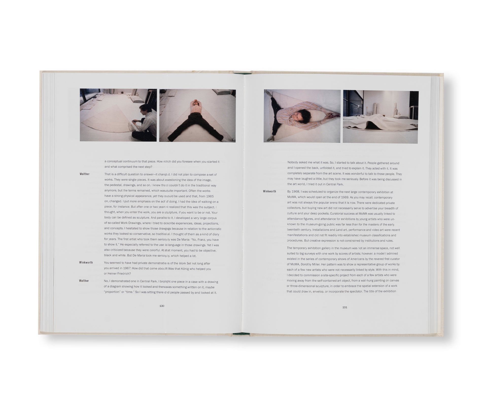 This publication retraces the acclaimed German artist Franz Erhard Walther’s (born 1939) multipart sculpture First Work Set, begun in 1963 and completed in 1969. The piece’s 58 individual fabric elements are activated by visitors in a series of quotidian actions such as folding, dropping and measuring.