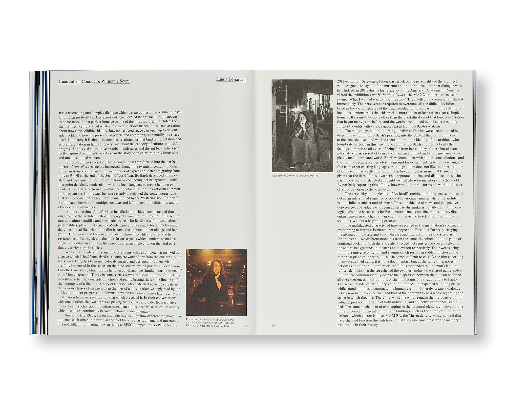 The wide range of writers and collaborators who have contributed to this book highlight Julien's critical thinking and the way his work breaks down barriers between different artistic disciplines, drawing from film, dance, photography, music, theatre, painting and sculpture by using the themes of desire, history and culture.