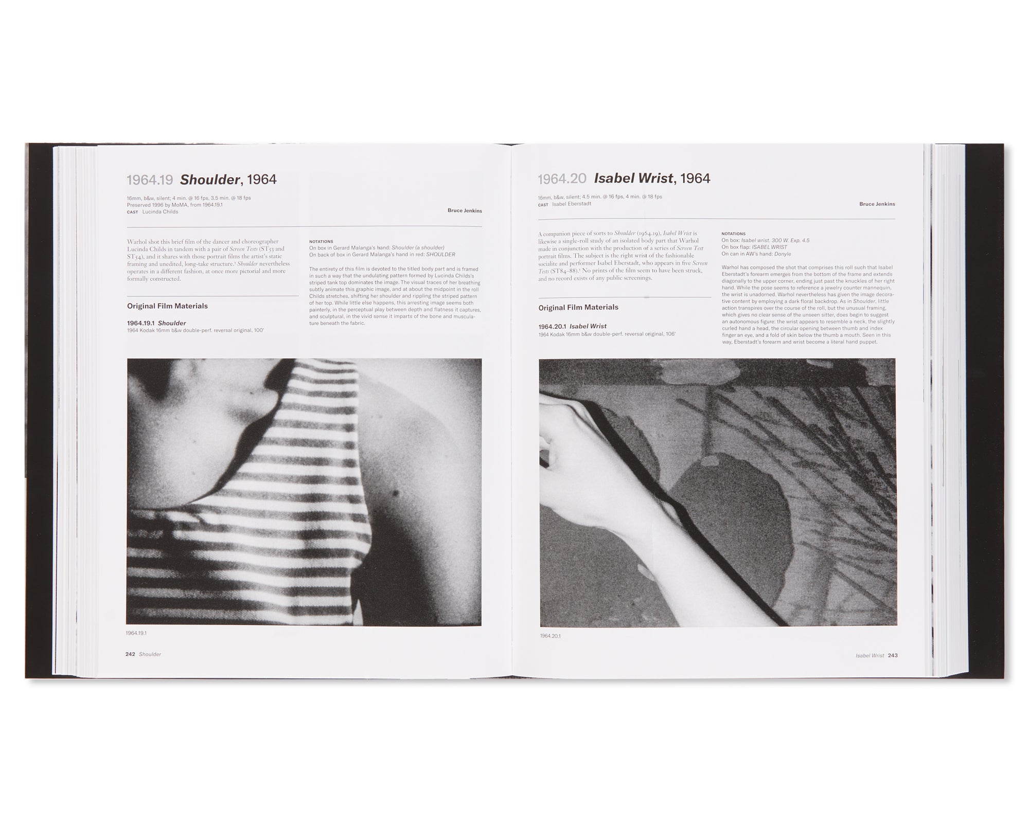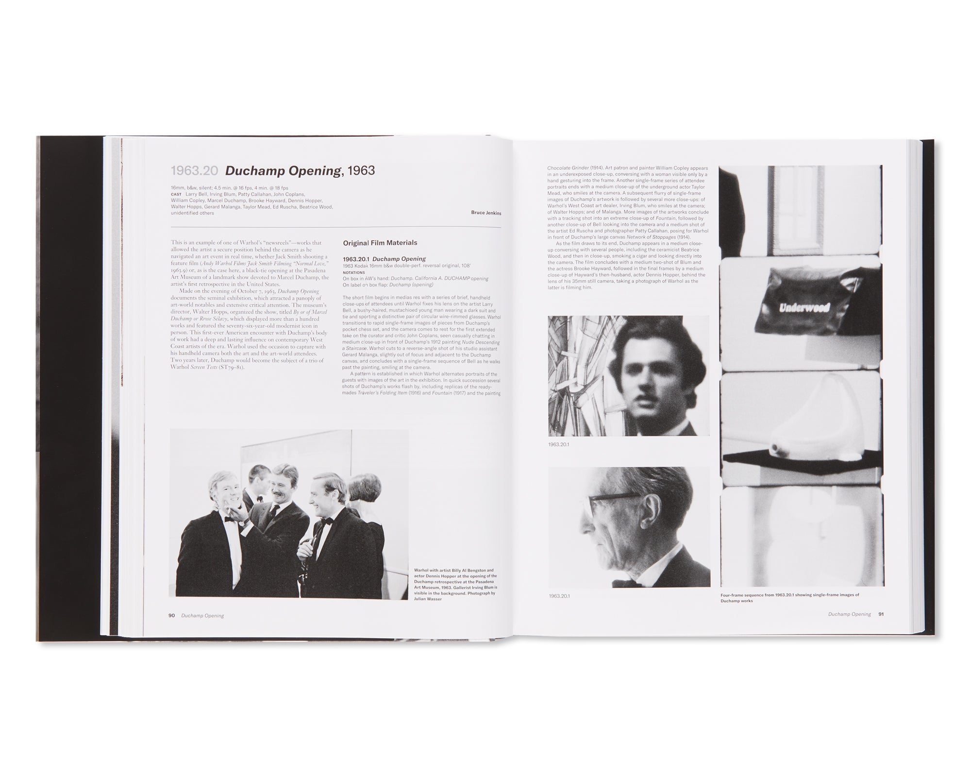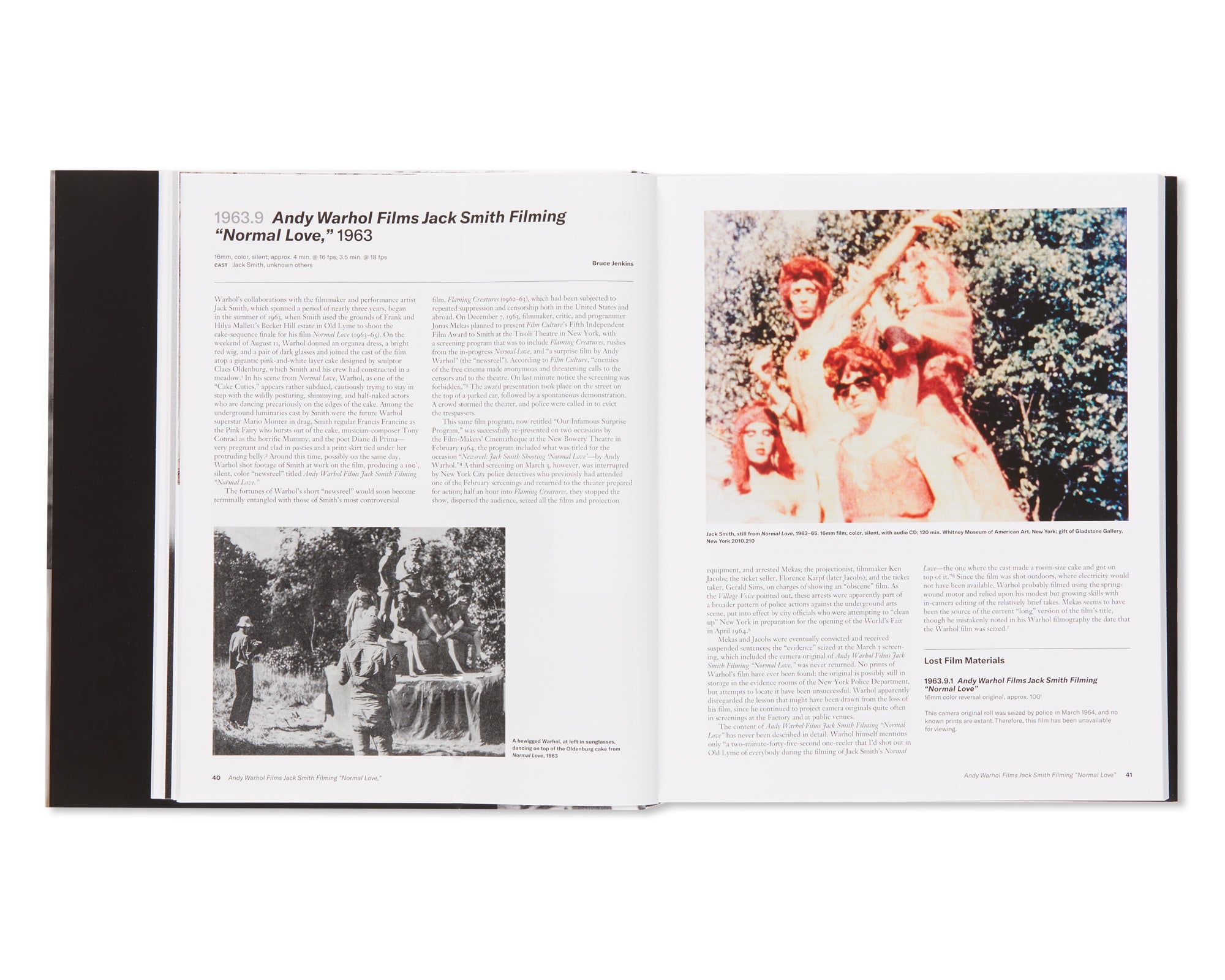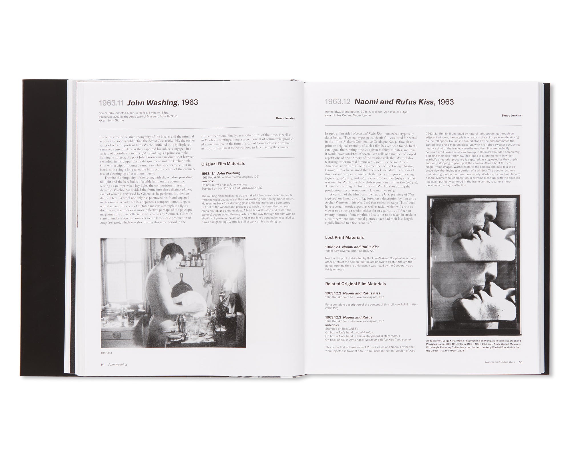 アメリカ人アーティスト、アンディ・ウォーホル(Andy Warhol)の作品集。2006年に刊行された作者の映像作品のカタログレゾネ『Andy Warhol Screen Tests』を補完するものであり、1963年から1965年にかけて制作された作品に焦点を当てている。作者が影響を受けたものや、素材、制作プロセス、革新的なその技術、作品に関わった人々など、さまざまな要素から構成されている。短編、長編、サイレント、サウンド、台本、即興など数多くのフィルムやビデオ作品を制作した作者による100点以上の作品にまつわる要約と分析も収録。また、映像作品をより深く理解すべく、スチル写真やドキュメンタリー画像も掲載しており、その中にはこれまでほとんど世に出てこなかったものも含まれている。