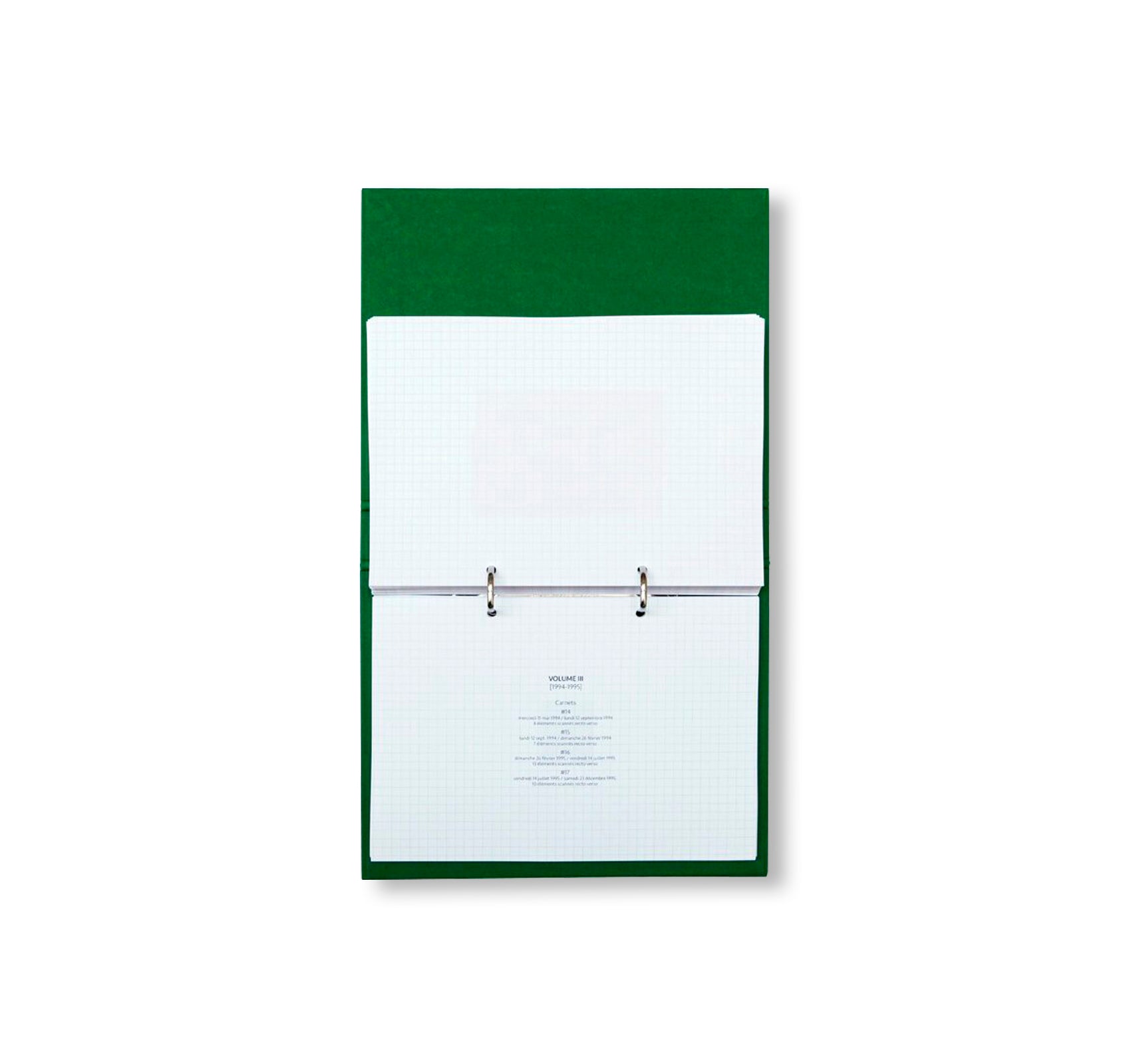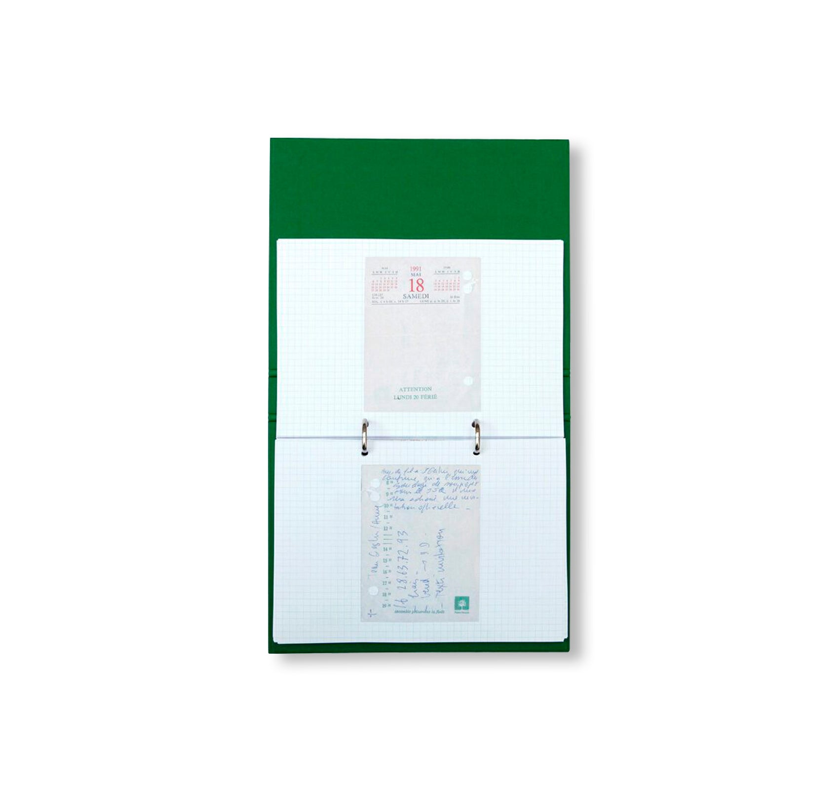 フランス人アーティスト、ルフェーヴル・ジャン=クロード(Lefevre Jean Claude)の作品集。フランス・サン=ティリュー=ラ=ペルシュの「CDLA(The Centre des livres d'artistes)」で開催された展覧会に伴い刊行された。作者は1977年以降、アーカイビングやメモ書きをするようになり、ライティング(書き作業)を好みの媒体として扱うようになった。本書は、作者自身のノートに差し込まれているモノを原寸大でスキャンしたファイリング集である。レシートや領収書、展覧会チケット、ホテルやレストランの名刺を挟み、中にはミーティングの日時や集合場所、アーティスト名や進行中のプロジェクトに関するメモが注釈として書き込まれており、このアーカイブ群はその時に制作中だった作品を探れるものでもある。本書は、1988年から1995年までの間に記録された1冊めから17冊めまでのノートに挿入されたエフェメラをバインダーに纏めた一冊となっている。