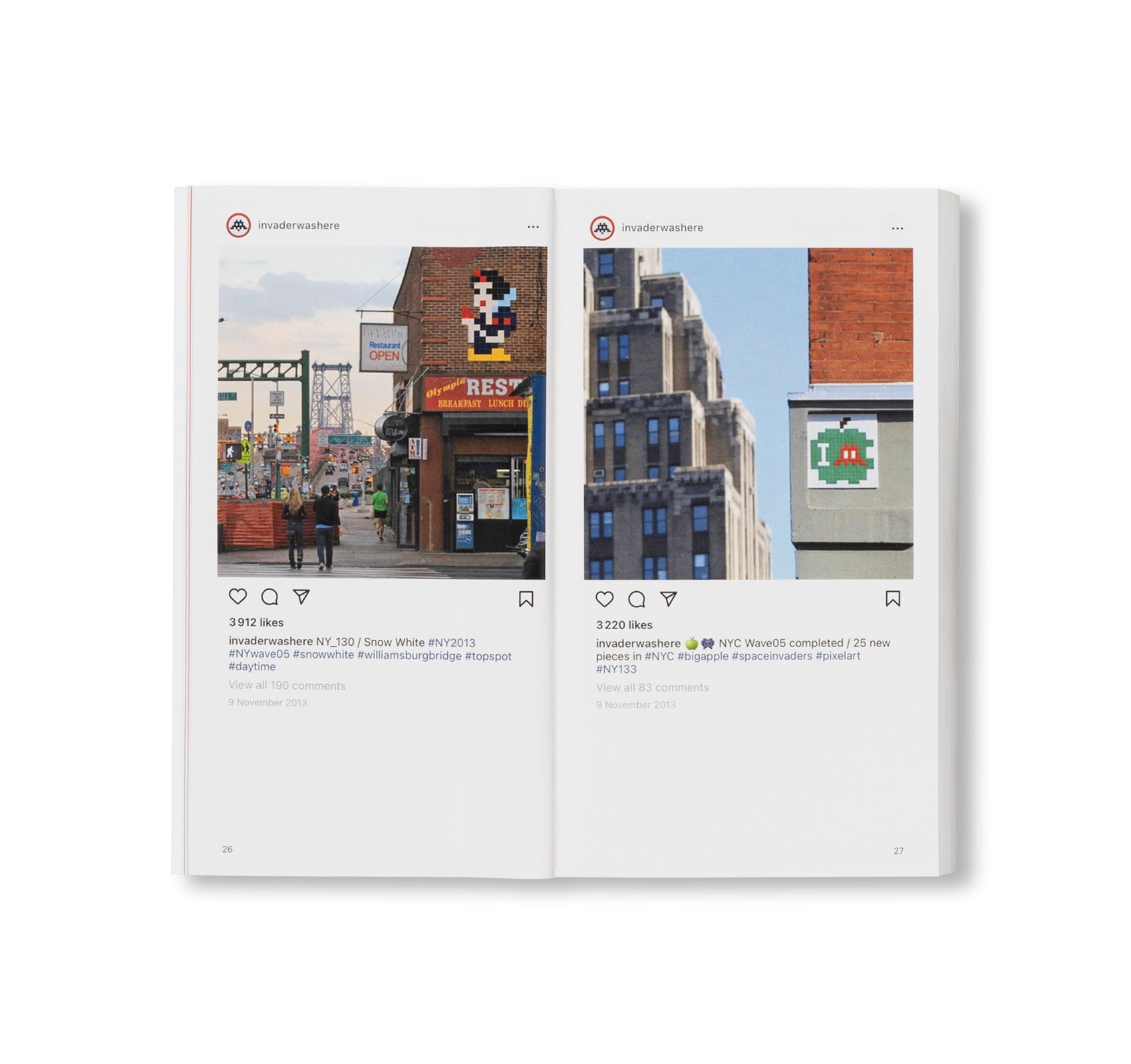 本書は、2013年10月22日から2023年10月22日までの10年間にインベーダーの芸術が歩んできた旅路を記録した一冊であり、10年分にもおよぶ「インスタグラム(Instagram)」上のフィード投稿とストーリーをまとめたユニークで充実したログ・ブックである。このいわゆる「インスタブック」は、創作プロセスと作品が刻んできた世界規模の進化を捉え、視覚的に楽しめる形の日記で、作者の旅の足跡を我々に近い距離感で見せてくれる。