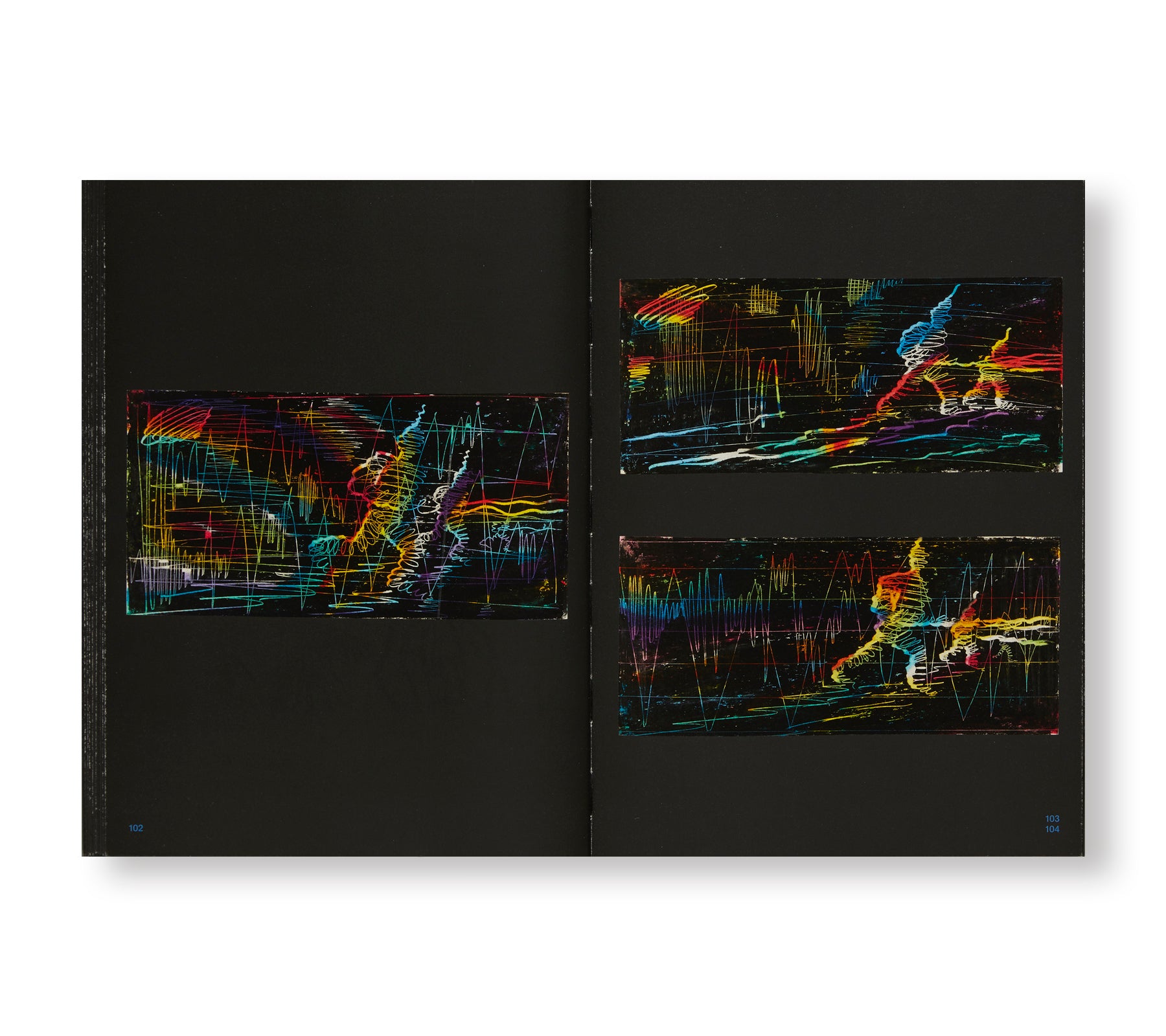 本書が優れている点は、原画のドローイングが持つ「ネガ」的な特性を黒のページで再現し、作者が直感的にスクラッチすることで隠されたカラーのレイヤーが出現してモチーフが描かれるこのシリーズを巧みに表現していることであろう。