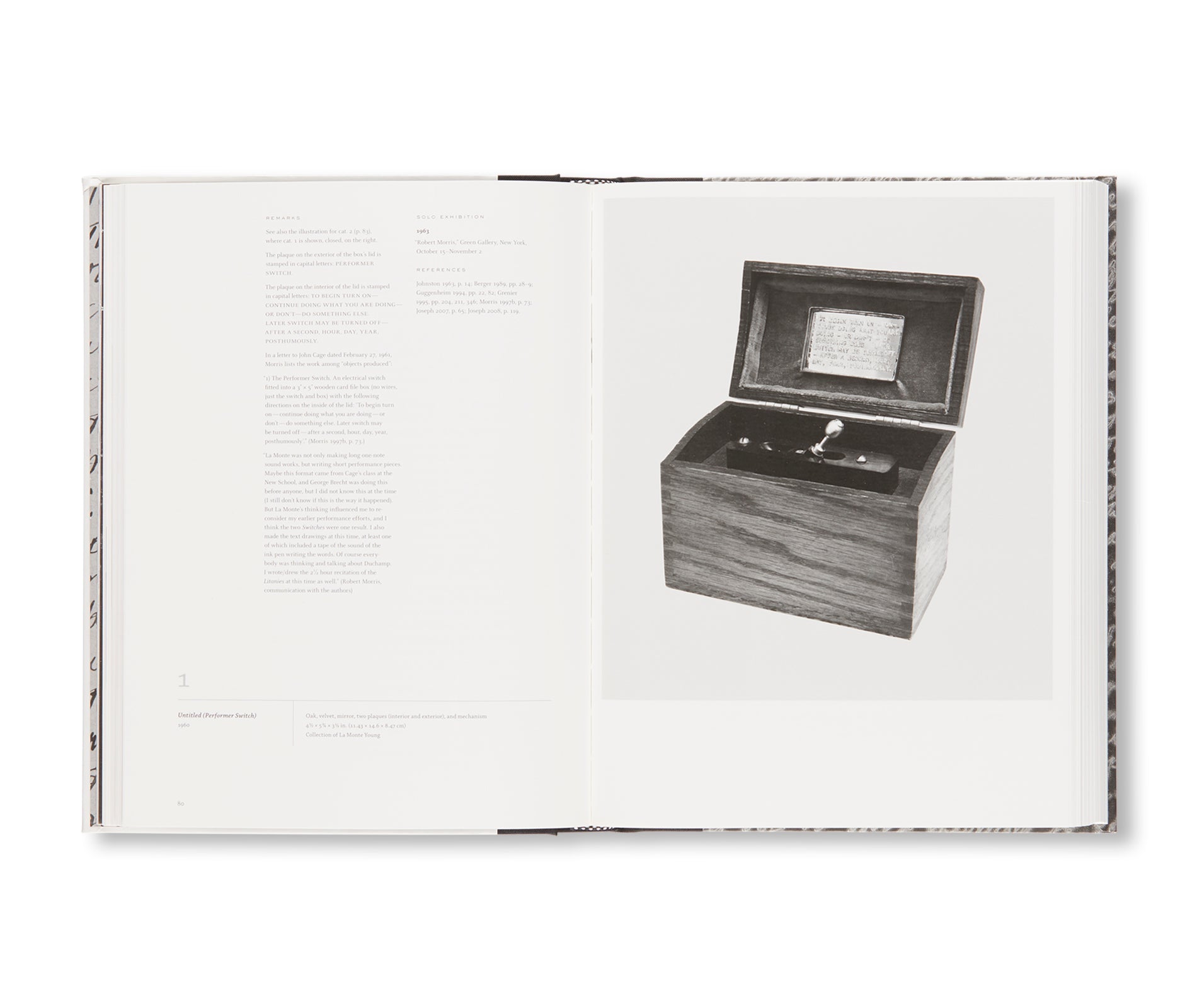 アメリカ人アーティスト、ロバート・モリス(Robert Morris)の作品集。ミニマル、ポストミニマル、コンセプチュアル・アートの歴史における重要人物である作者が、1960年から1965年にかけて制作した約100点の「オブジェクト・スカルプチャー」(当時は「プロセス・タイプ・オブジェクト」と呼ばれた)を収録。プラーク(壁掛け)、コンテナ(容器)、補助もしくは模造された木製の既製品、スカルプメタル、鉛の作品で構成されている。