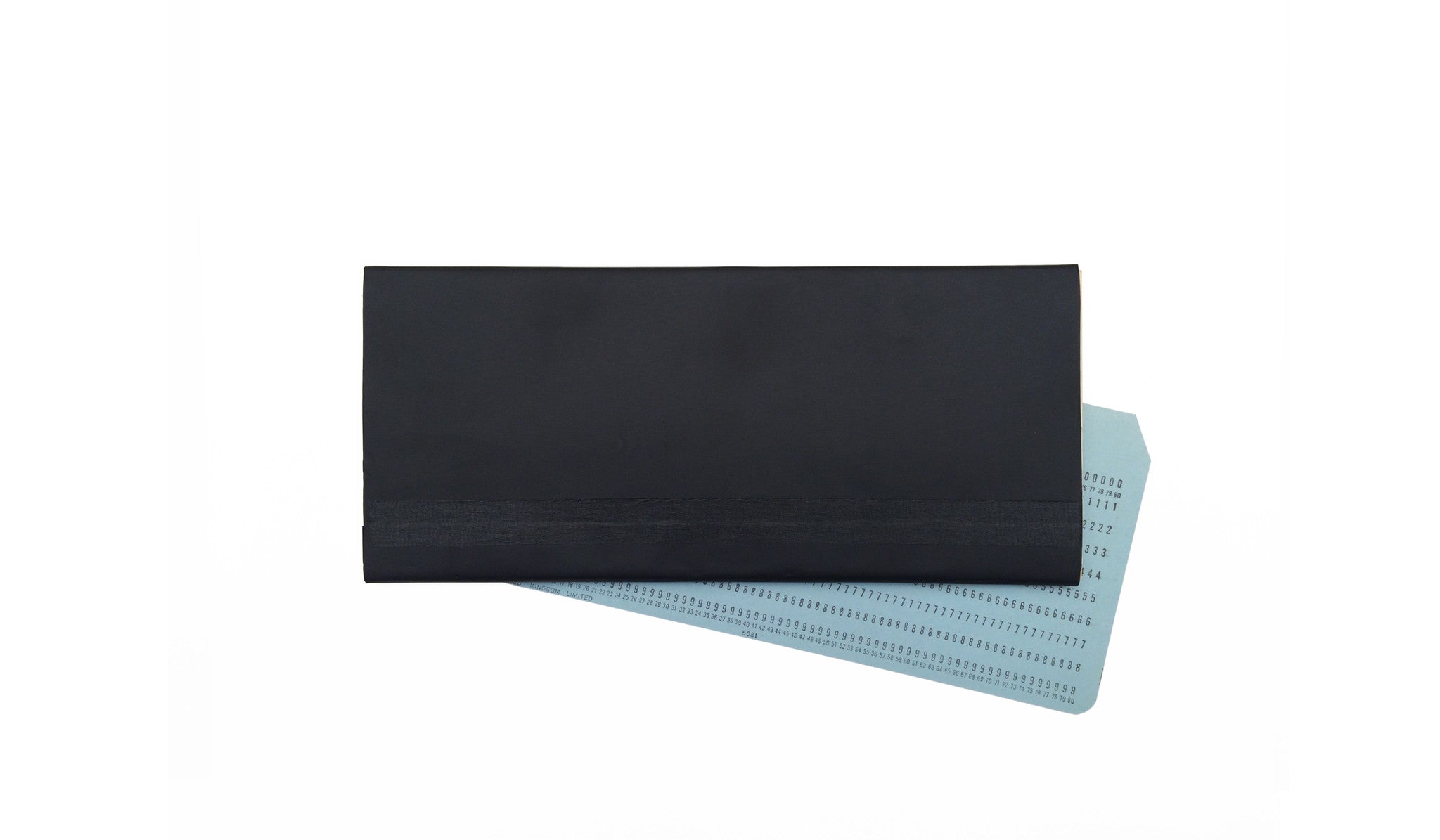 The handmade book by Antony Cairns features 25 photographs of Osaka Station and its surrounding environment. The work has been printed on used and unused computer programme punch card. The single cards are slipcased in black aluminum foil.
