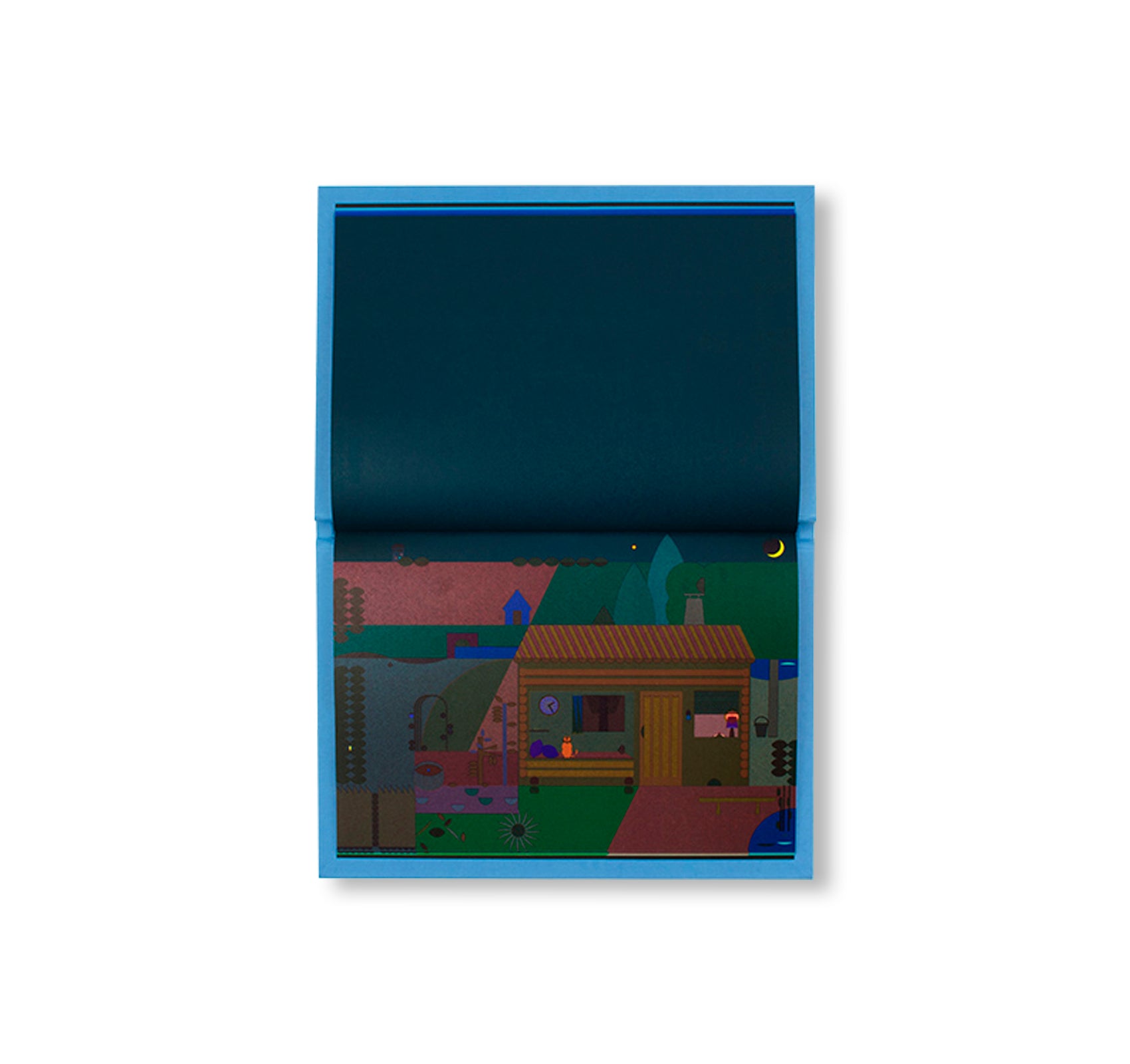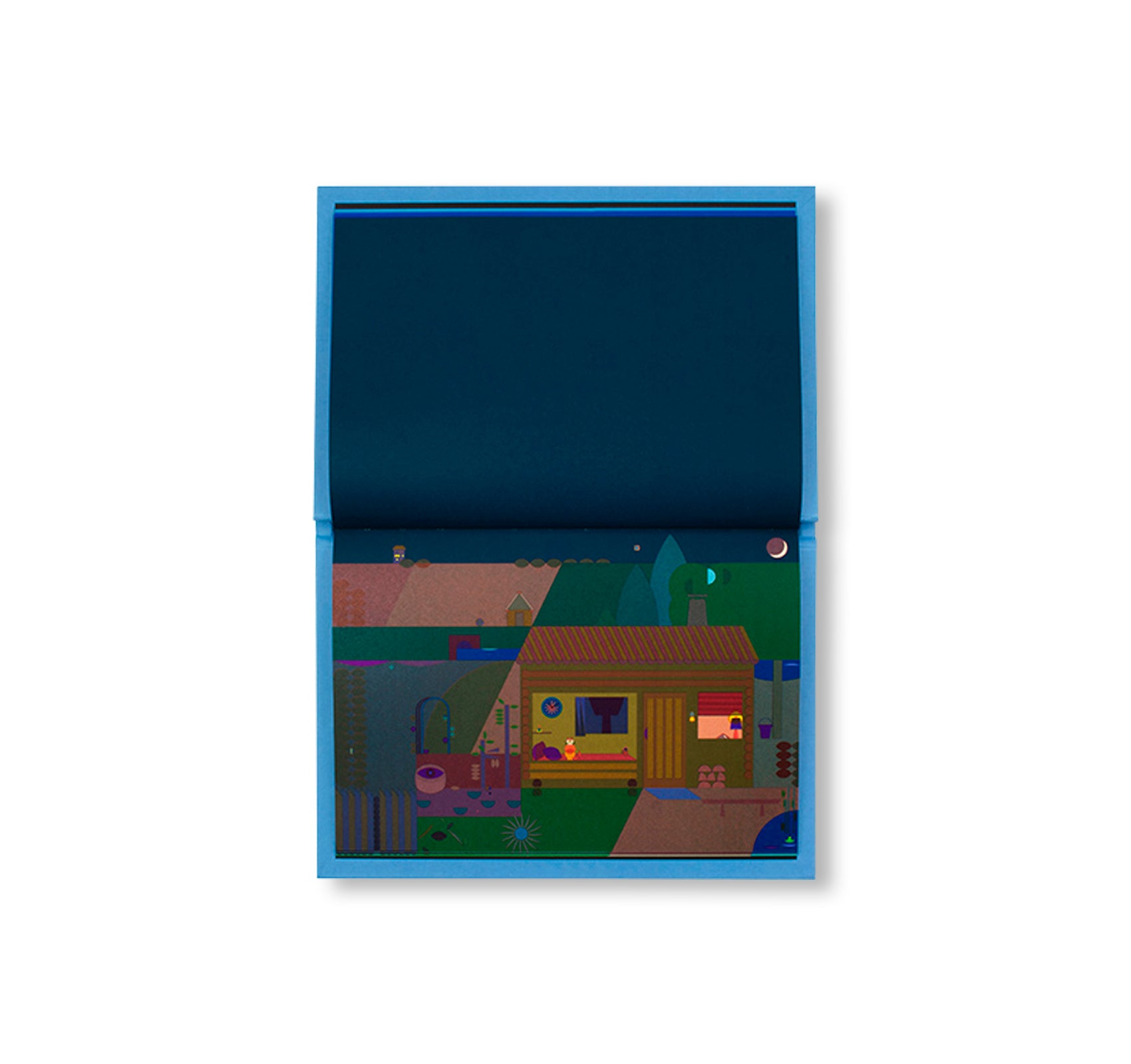 Panorama is the contemplation of a single landscape printed 24 times, once for each hour of the day. Page after page, the changing colours reveal the passing of the hours and the little miracles that are part of any given day in a life. On this particular day, the gentle warmth of a spring afternoon gradually gives way to the evening’s nocturnal frost; nature awakens and eventually drifts back to sleep. There is an element of child’s play in the observation of changes in the details from one page to the next: the cabin, the clock, the cat, the ball, the firefly… and the list goes on! Fanette Mellier’s Panorama is a world in which layers of ink reveal a subtle yet intricate spring day.