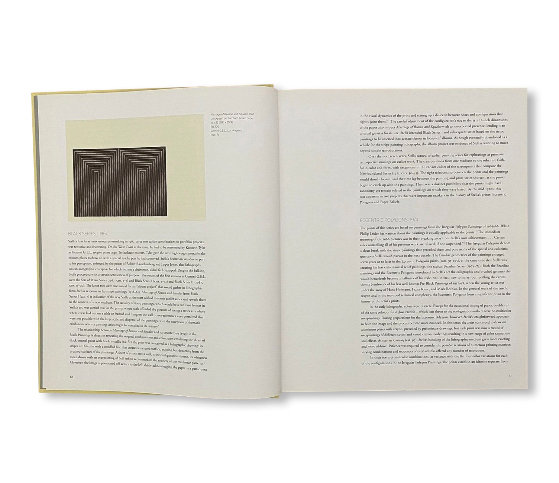 アメリカ人アーティスト、フランク・ステラ(Frank Stella)の作品集。抽象絵画や彫刻作品における作者の功績は多大なるものであるが、加えて近代版画史という観点でも大きな貢献を果たしてきた。本書は、いかにして作者がこのメディアを革新的に用いてきたのかを探り、版画の制作プロセスが絵画や彫刻といった他のメディアを用いた作品に及ぼしてきた影響や密な関係性を示し、版画という伝統的なツールと美学にどのように風穴を開け、人の心を動かすほどの複雑さと美しさを兼ね備えた作品が生み出されてきたかを我々に紹介する。