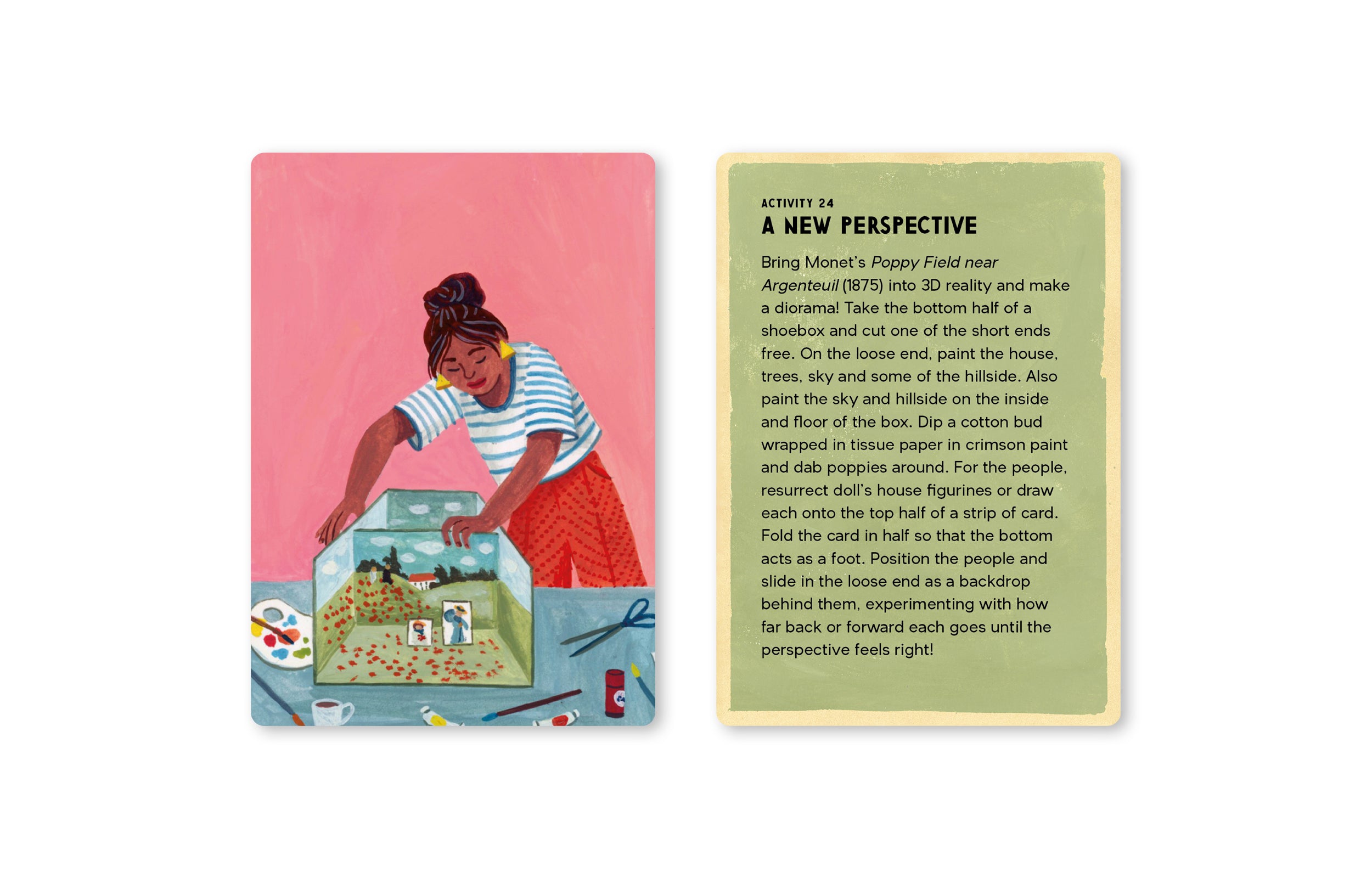Using the activity cards, you’ll create art from all sorts of angles, get lost in origami water lilies and decipher your very own Monet murder mystery. In the puzzle, spy the pioneers of the impressionist movement, Monet's studio boat, his wife Camille and details from five of his landmark paintings. Immerse yourself in the world of Monet and, like the artist, discover the beauty all around you!