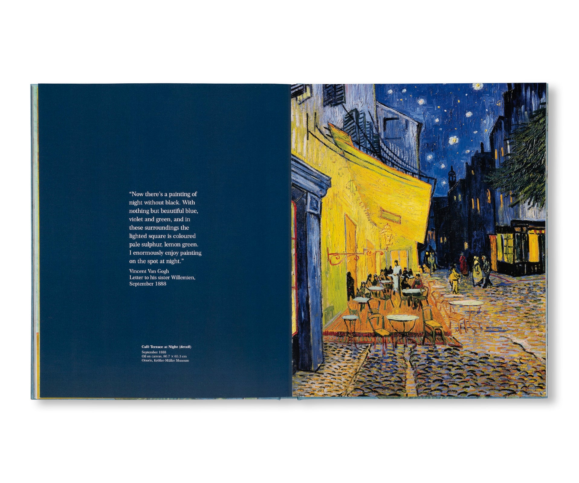 作品の中でもとりわけ象徴的かつ鮮やかな色彩を放つ「星月夜(Starry Night)」から「ひまわり(Sunflowers)」、「アイリス(Irises)」、情緒を揺さぶる自身のベッドルームの描写、強烈かつ換情的に描かれたカフェのインテリアまで、本書は豊かに作者の芸術的ヴィジョンの拡がりと深みを紹介する。
