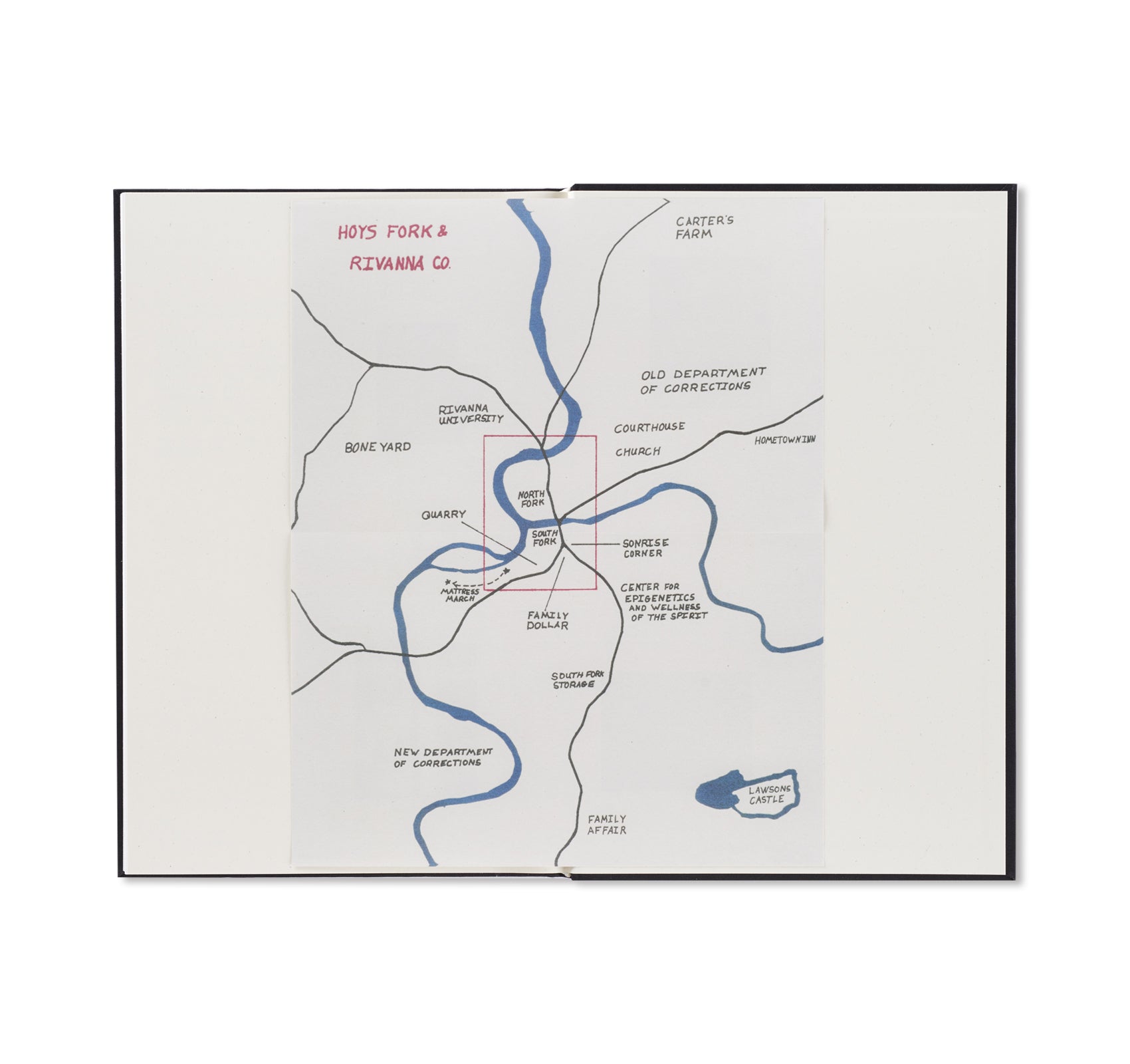 What the Living Carry unveils a small town named Hoy’s Fork, situated in the American South. Drawing on memories of the rural setting in which he grew up, Virginian photographer Morgan Ashcom brings together photographs, type-written letters and a hand-drawn map to build a fictional narrative of a foreboding place. Leading us on a trail through the town and its surrounding forest, Ashcom presents scenes that point to a mysterious history, and people whose familial connections remain unknown: a forlorn old man, with champagne to hand, reclines on the corroding steps of a once grand home; a bloodied mattress is carried through an overgrown field; a solitary child burrows into a meadow, while on the streets, a man dutifully cleans a white picket fence – a vision that belies a local mural of a distant, ancient land. Interspersing this fragmented narrative is a set of texts – four letters responding to ‘Morgan’s’ request for DNA analysis – written by ‘Eugene’ of the ‘Center for Epigenetics and Wellness of the Spirit’. If What the Living Carry provides a set of clues to unravel the enigma behind this strange world, it is through a visual record that is simultaneously autobiographical and imagined, and inclined to elude.