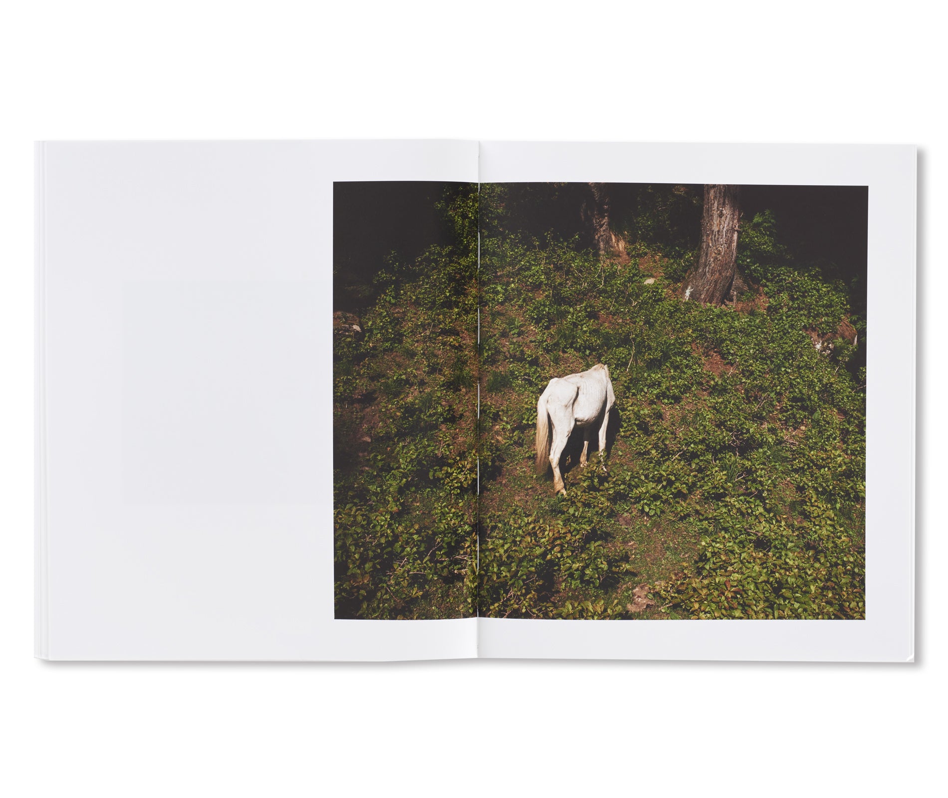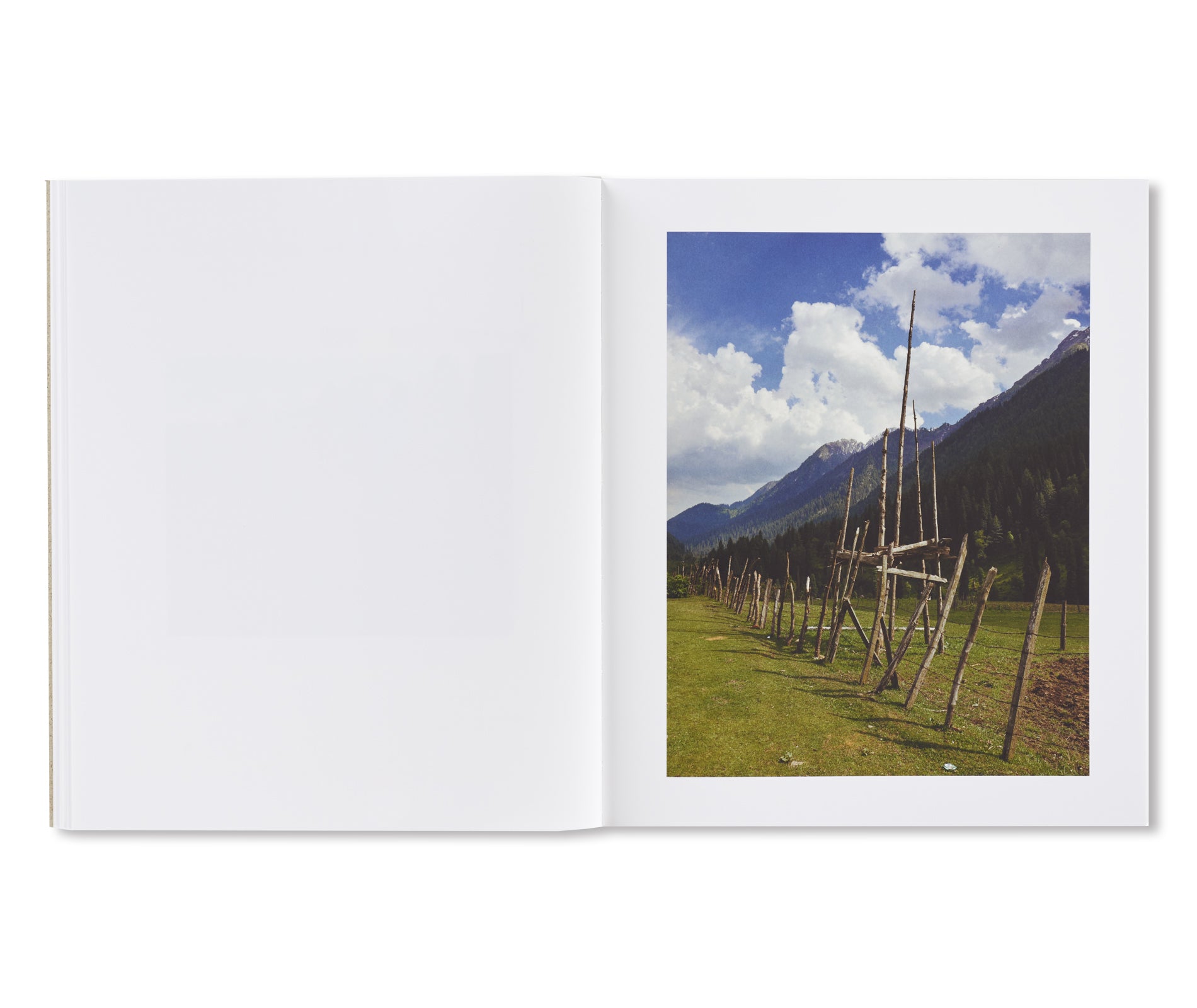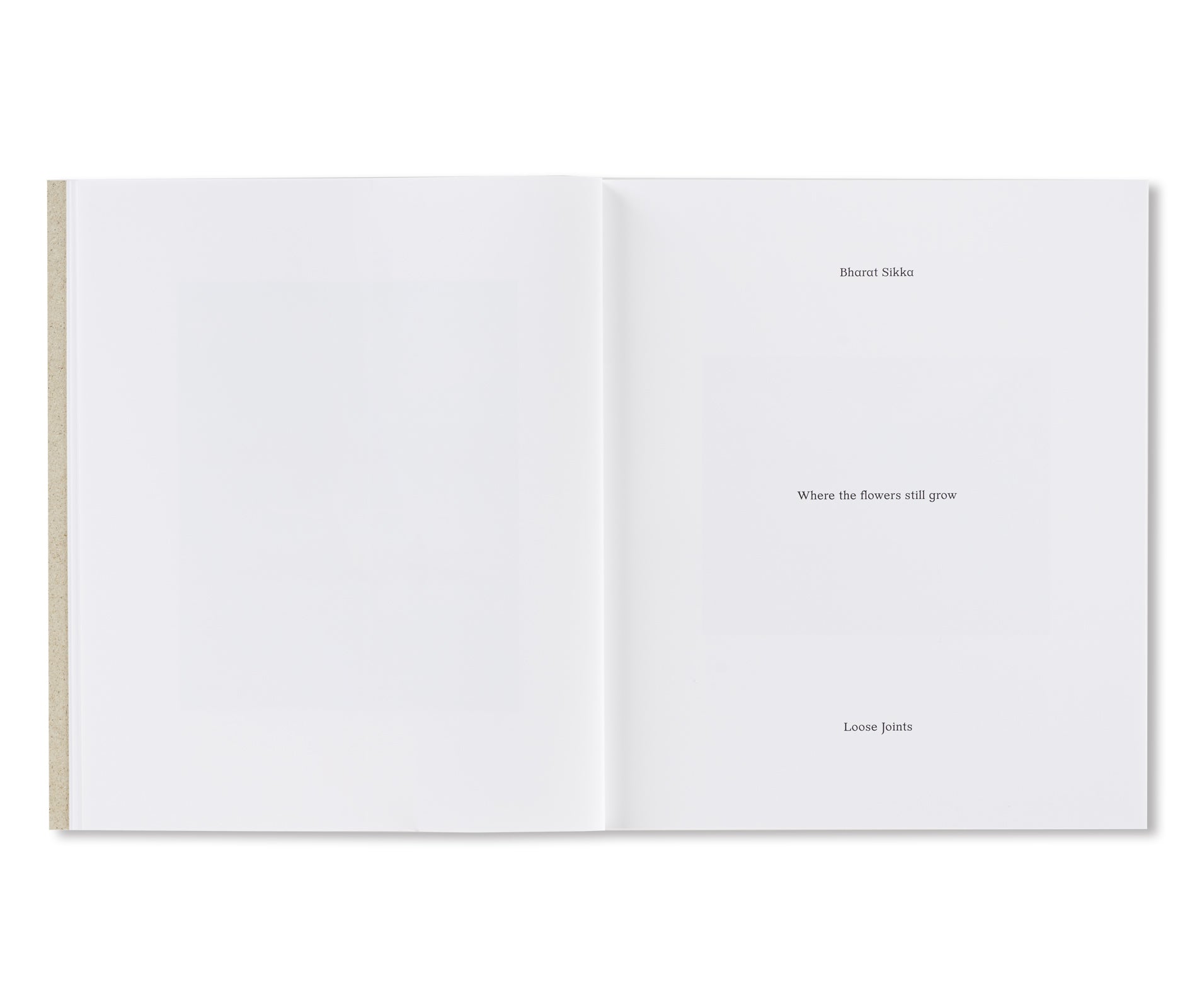 インド人フォトグラファー、バハラ・シッカ (Bharat Sikka)の作品集。インド人にとってカシミール地方は神話的な場所である。世界でも最も美しい渓谷地帯の一つとしてこの地域は古くから讃えられてきたが、1980年代後半以降はインドという国家のアイデンティティを根底から揺るがす政治的、宗教的対立を表す代名詞となってしまう。デリーを拠点に活動する作者は、最初自身の家族とともに休暇を利用してカシミールに訪れた。2013年のことだった。滞在中、一人のカシミール人の若者がこの地域の歴史的な経緯や現在も続く対立関係に翻弄されながら自分が自分であることに苦悩する姿を描いたミルザ・ワヒード(Mirza Waheed)の小説『The Collaborator』に出会ったことをきっかけとして、その後2014年から2015年にかけカシミールを訪れ、自分自身の個人的な体験を通じてこの争いの絶えない土地を理解しようと試みた。このプロジェクトは、小説からインスピレーションを受けて作られたものであるが、結果として、カシミールの緑溢れる豊饒な自然と、そこに暮らし苦闘する人々に思いを巡らせる作品となった。『Where the flowers still grow』の中核をなすのは、国境や政治的対立のことなど何も知らないかのような、誰にも荒らされていない雄大な自然を背景にひとり佇む若者たちのポートレイトである。全てを語ることができる程の果てしない言葉の数々を含んでいるかのような沈黙。そんな沈黙を破り得るほどの表現を欲するように、作者の構えるカメラと被写体の男たちはしっかりと見つめ合う。鑑賞者は、あたかも作者と被写体の二人から何光年も離れた場所に岩や花をつけた植物といった風景があるように錯覚する。それは、我々の経験に基づいた鑑賞者としての問題点であることを暗に示す。では、イメージの中のどこに問題と答えがあるのだろうか?カシミールの男たちのポートレイトと自然の風景を一つのイメージとして溶け合わせた作者は、さらに自分自身がその地を訪れて体験したことの親密なディテールを記録していく。例えば人々の家に転がっているもの、動物、廃墟、自然の断片など、作者が撮影したものたちは、このプロジェクトの舞台装置となり、この地域とそこに暮らす人々のもつ微妙なニュアンスを伝え、人間世界には無関心であるかのような牧歌的な自然と、そこに生きる人々の人生や夢などとの間のコントラストを浮き彫りにする役割を担っている。本作を見た後に我々の心に残るのは、カシミールという土地に対峙したシッカの心の動きと答え、紛争が残した爪痕、そして歴史の激動を見つめてきたもの言わぬ目撃者の存在である。