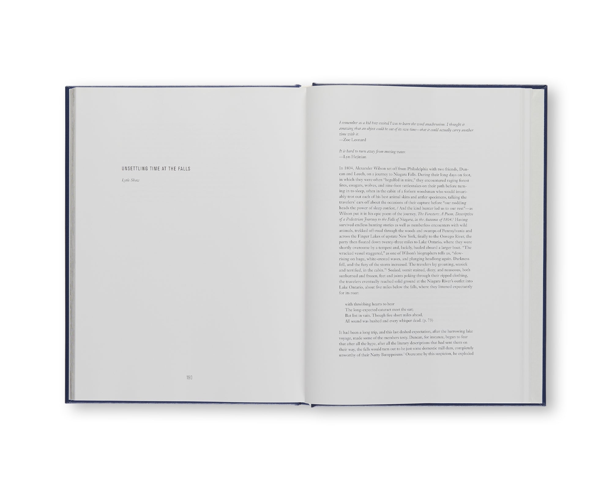 アメリカ人アーティスト、ゾーイ・レオナルド(Zoe Leonard)の作品集。本作は、1900年代初頭から1950年代にかけて世界三大瀑布の一つに挙げられるナイアガラの滝を撮影した何千枚もの絵葉書を蒐集したもの。この壮大な視点の集積は、人間による自然への介入や、アメリカの歴史的な物語を生み出す上で風景が果たす機能、さらには画像の複製と普及の技術的進化など、さまざまな問題を提起する。また、著名な面々によるナイアガラの滝の歴史的記述、ナイアガラの滝の絵葉書に書かれたメッセージをまとめた作者によるテキスト「This is where I was」も収録。