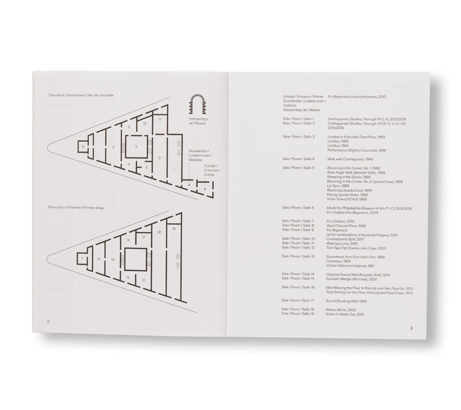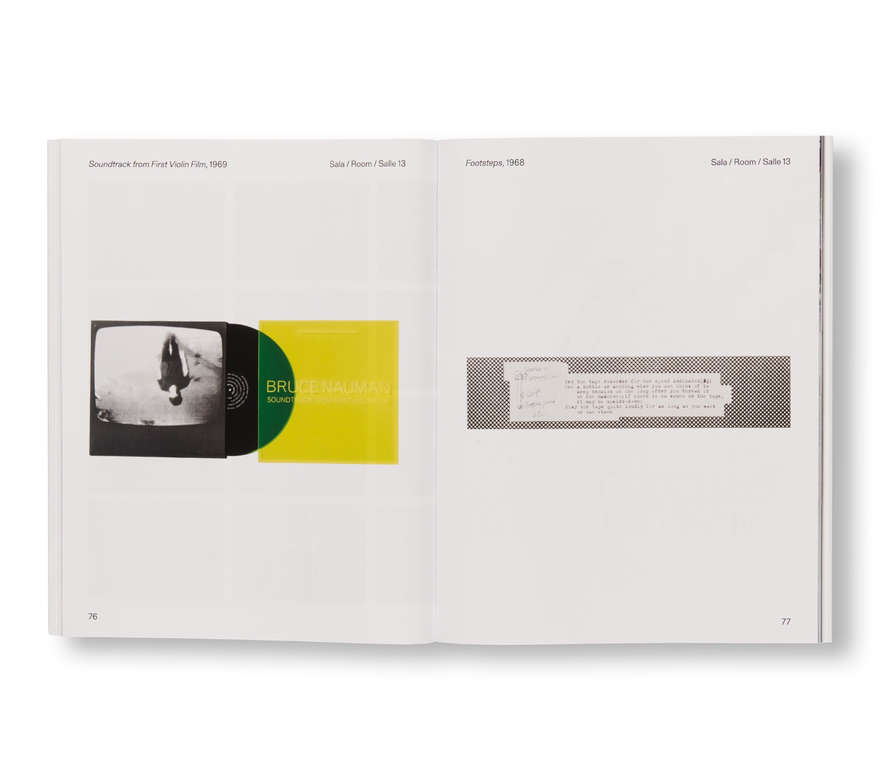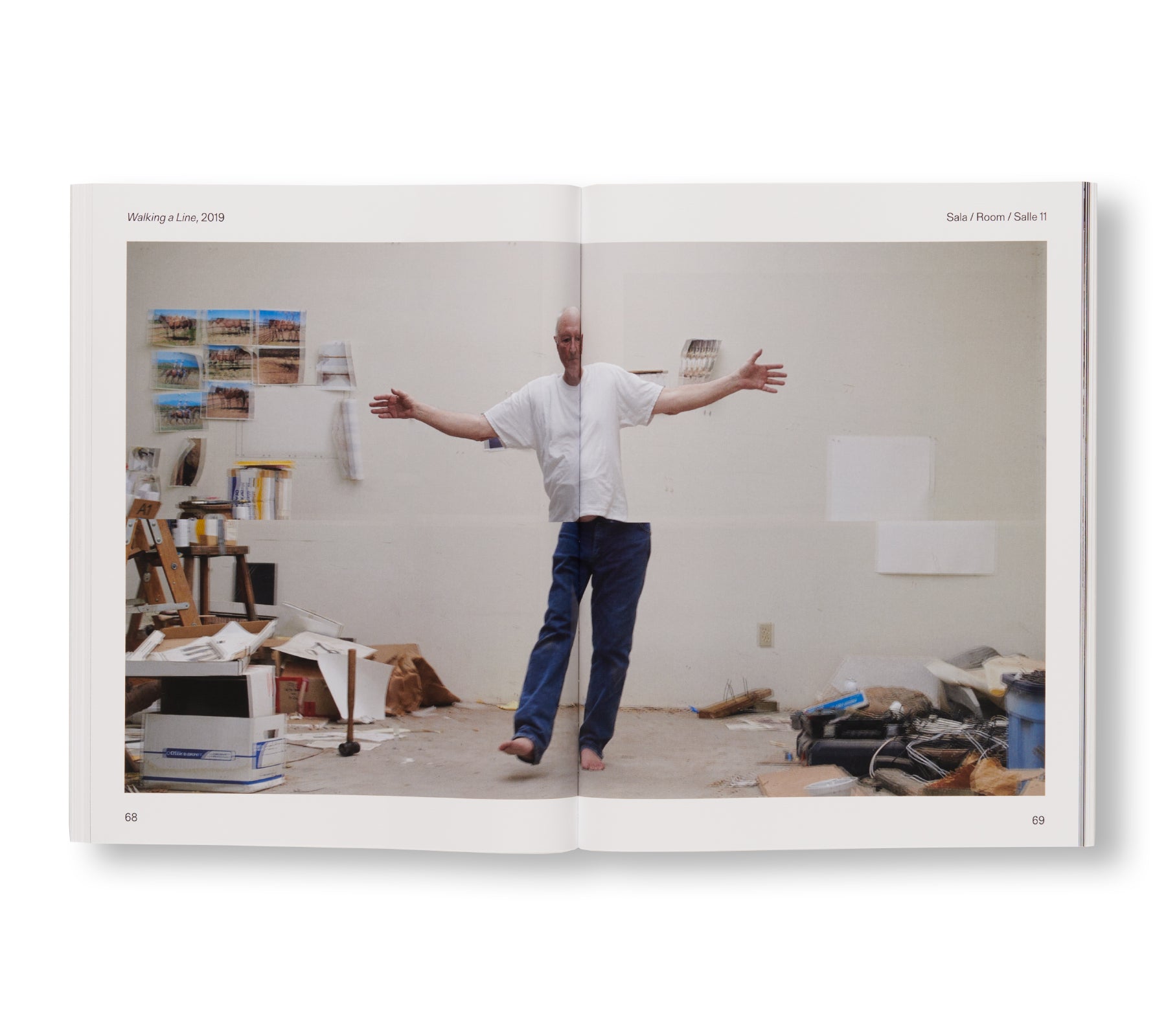 アメリカ人アーティスト、ブルース・ナウマン(Bruce Nauman)の作品集。2021年5月から2022年11月にヴェネツィアの現代美術館「プンタ・デラ・ドガーナ(Punta della Dogana)」で開催された展覧会に伴い刊行された。装丁はロンドンを拠点とするデザイン事務所「Zak Group」が手がける。この展覧会では、「フィラデルフィア美術館」と「ピノー・コレクション」の共同コレクションに所蔵する2つの作品「Contrapposto Studies, I through VII」、「Walks In Walks Out」が展示された。本展では、ウィットに富んだ作者が、1960年代に制作した「歩く」作品に新たなひねりを加えている。「コントラポスト」とは、重心の大半を片足にかけることによって上半身が体の軸からずれる人物のポーズを指す。最新作では、この古くからある芸術的概念を探求し、狭い廊下を歩きながら、古典的なポーズを取ろうとする1968年のビデオ作品「Walk with Contrapposto」を再訪する。作者は、現代のデジタル加工の技術を駆使して、この初期作品を新たな文脈で構築し、人間の動きや静止している表現に対して疑問を投げかけている。本書は、2015年から2019年にかけて制作された「Contrapposto」シリーズとオリジナルの映像の記録に加え、作者の活動を通じての空間とパフォーマンスの用い方を考察した新しいエッセイがスリップケース付きの2冊組書籍に収まっている。1巻は、エッセイ全7点と、「フィラデルフィア美術館(Philadelphia Museum of Art)」の「キースL.・アンド・キャサリン・サックス・コレクション(The Keith L. and Katherine Sachs Collection)」のキュレーターであるカルロス・バスアルド(Carlos Basualdo)と作者とのインタビューが収録されており、2巻は本展に出品された全32点の図版とエッセイが収録されている。