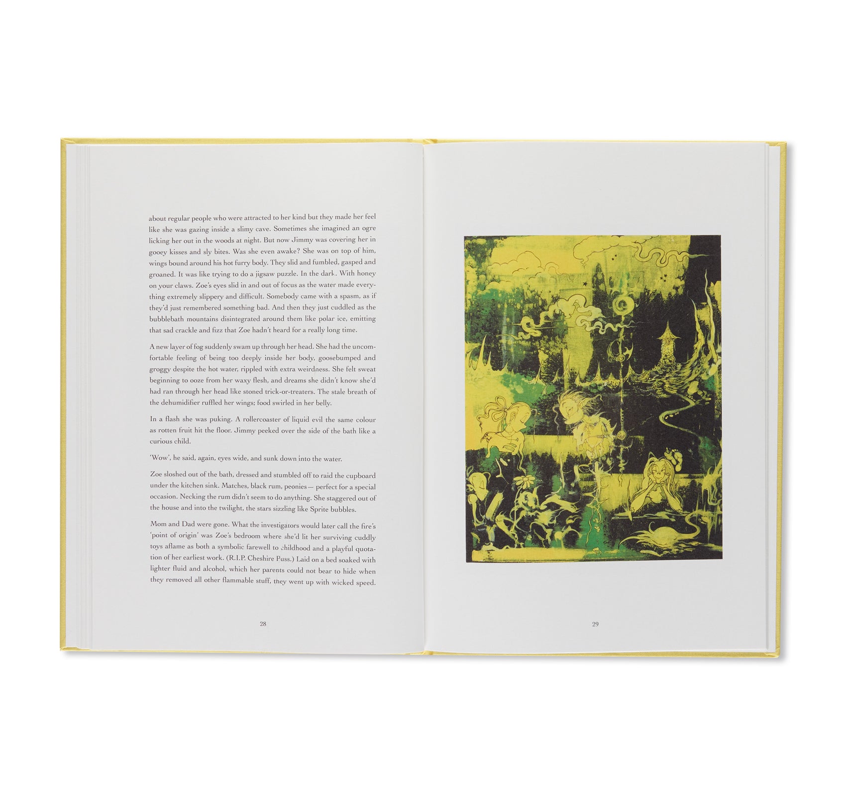 2020年にシェルドンが制作した絵画とドローイング19点とフォックスの書き下ろし短編を収録。アウトサイダーアーティストのヘンリー・ダーガー(Henry Darger)を思わせるシェルドンの想像の世界に着想を得たフォックスは、「蝙蝠の耳と羽、グリッターで輝くかぎ爪」を持つ放火魔 「ゾーイ(ZOE)」 を主人公とするおとぎ話を書き上げた。本作は、熱に浮かされた夏の夢のように、汗を流すことや、恐怖や好奇心をかき立てる存在を受け入れることは良いことだということを思い出させてくれる。