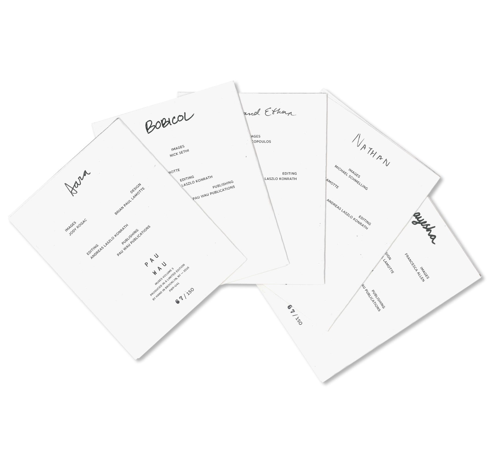 毎回 “Muses” をテーマに、5人のフォトグラファーがそれぞれ1冊ずつ制作したzineをまとめた、「Pau Wau Publications」が定期的に発行するブックレット・セットシリーズの第5弾。今回は、アリ・マルコポロス(Ari Marcopoulos)、フランチェスカ・アレン(Francesca Allen)、ジョディー・ロガク(Jody Rogac)、マイケル・シュメリング(Michael Schmelling)、ニック・セティ(Nick Sethi)が参加。各ブックレットは、折りを広げると一枚のポスターになる仕様となっている。